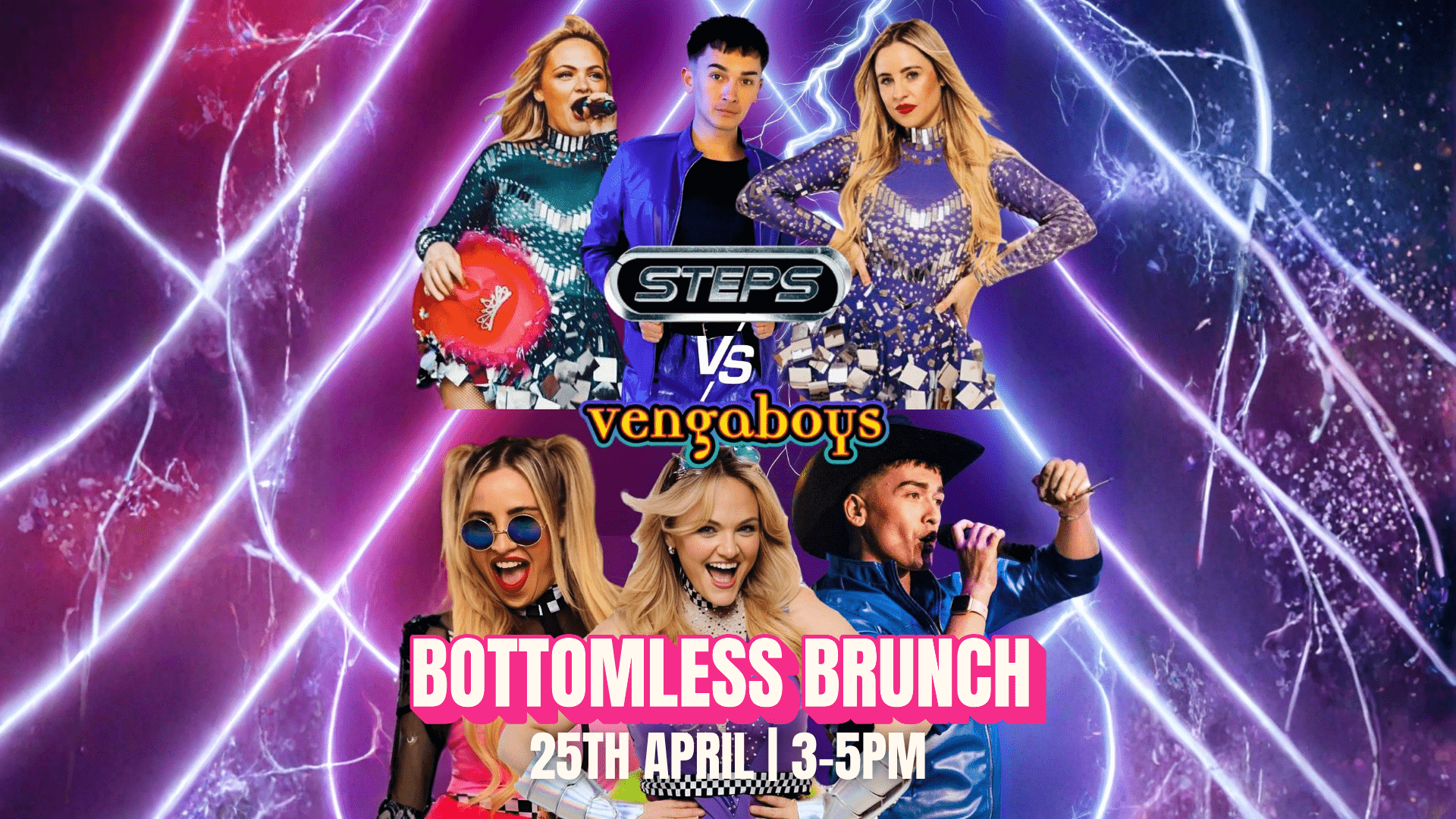 90 mins of bottomless drinks, bangin’ brunch, and live Steps and Vengaboys tribute – all for £35 (or just £25 if you book 2 weeks early).