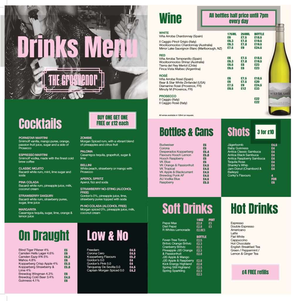 2 for £7 Bottled Budweiser & Corona, Jagerbombs, Baby Guinness & Tequila Rose. All day, every day.